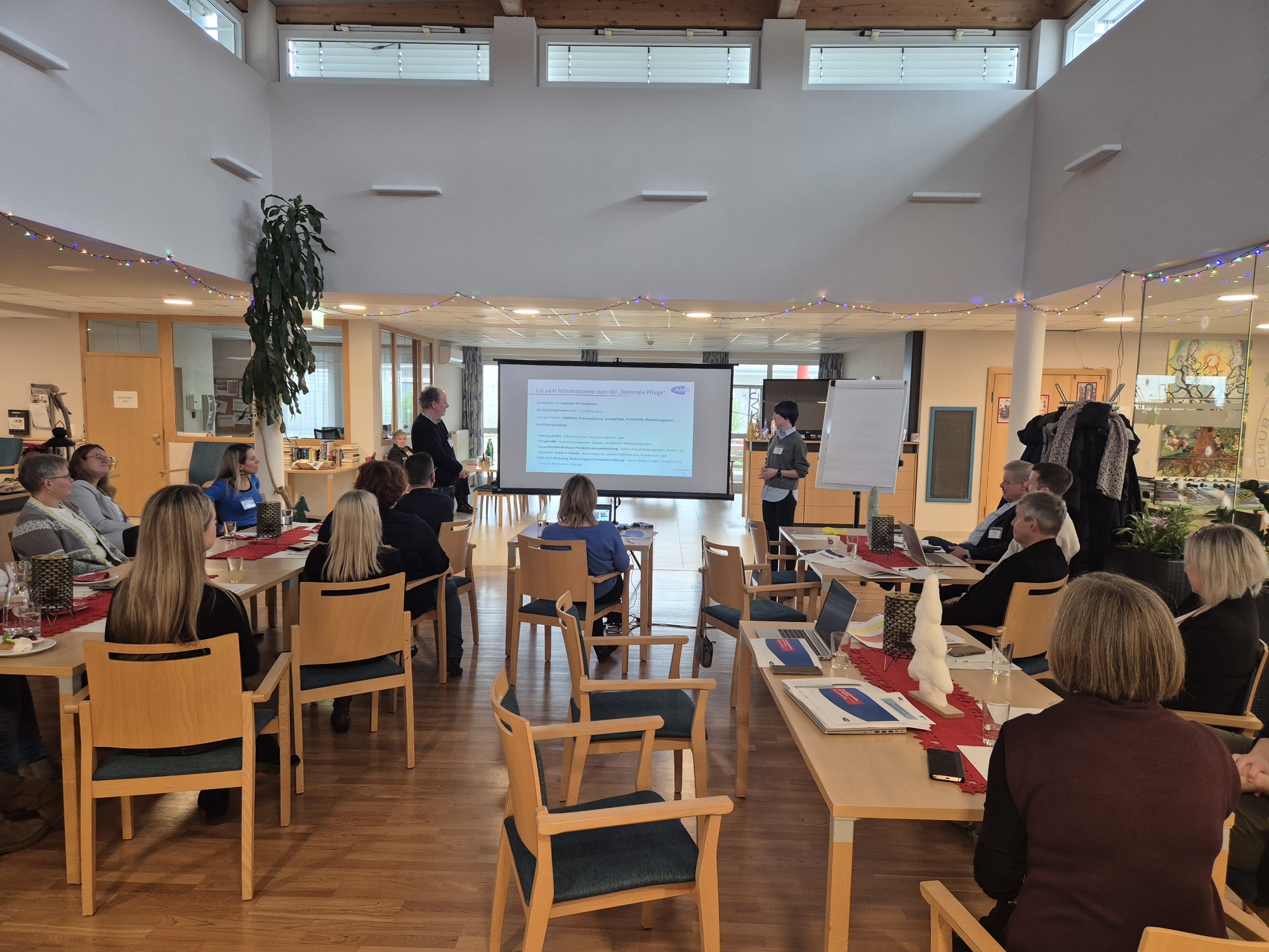 Nach einem offenen Come Together und der Vorstellung des IQV Burgenland gab Helmut Lutz, Geschäftsführer von malteser.care, praxisnahe Einblicke in die aktuellen Herausforderungen der Pflegebranche. Besonders wertvoll waren seine Erfahrungen zu konkreten Maßnahmen, die Betriebe im Bereich Personalentwicklung erfolgreich einsetzen können.